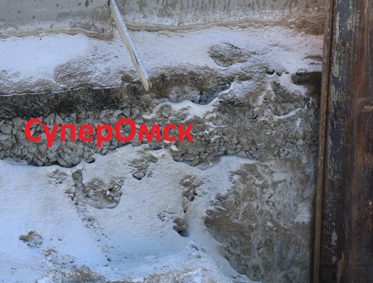 На фото корреспондента «СуперОмска» попал срез слоя нового покрытия на объекте. По визуальной оценке, он не менее 10 см.