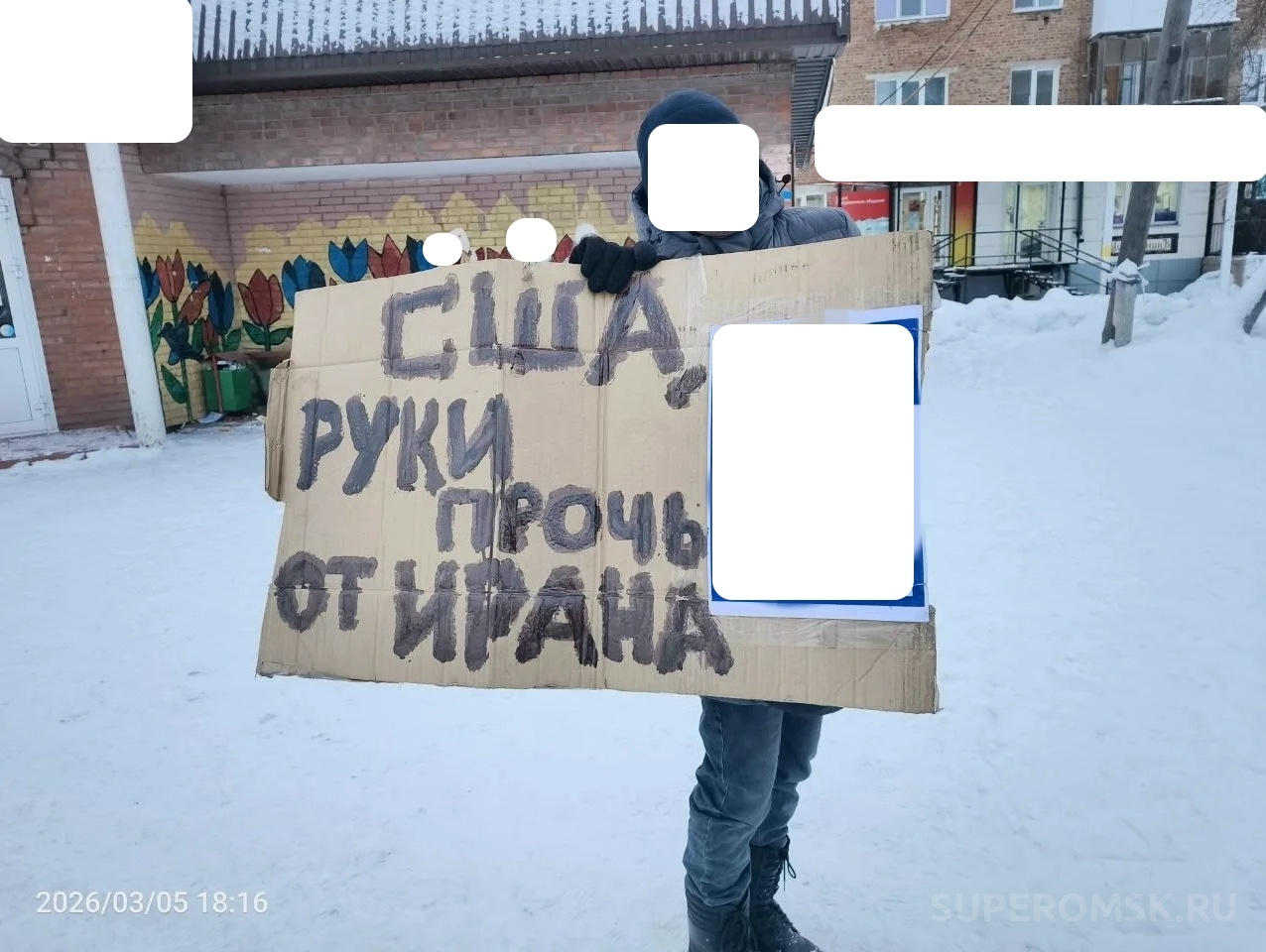 В группе районной газеты «Тарское Прииртышье» соцсети «ВКонтакте» опубликовано сообщение о публичном мероприятии на улицах райцентра. Неизвестный встал в одиночный пикет с плакатом следующего содержания: «США, руки прочь от Ирана». Действия, по всей видимости, жителя омской Тары стали реакцией на международные геополитические события на Ближнем Востоке.