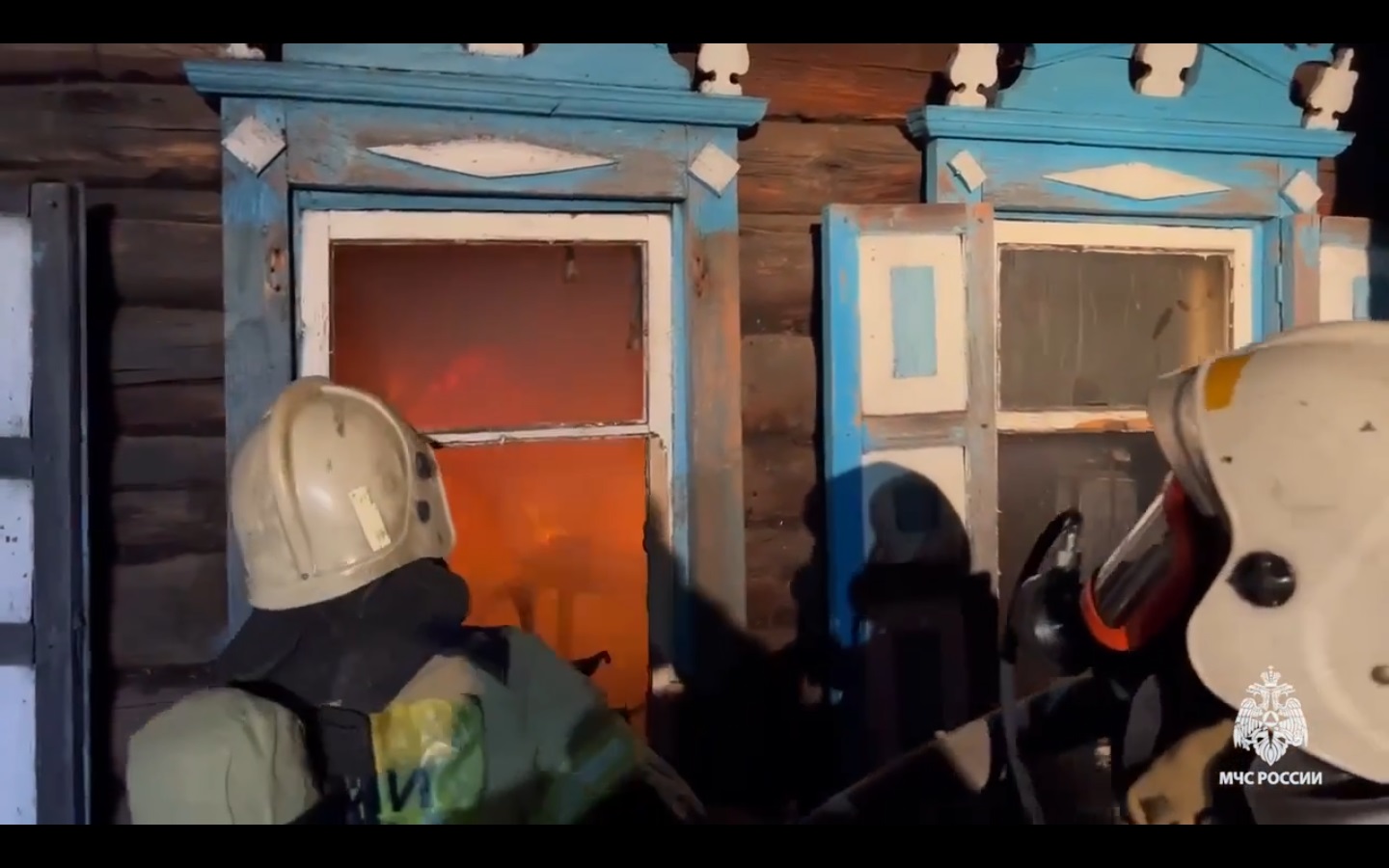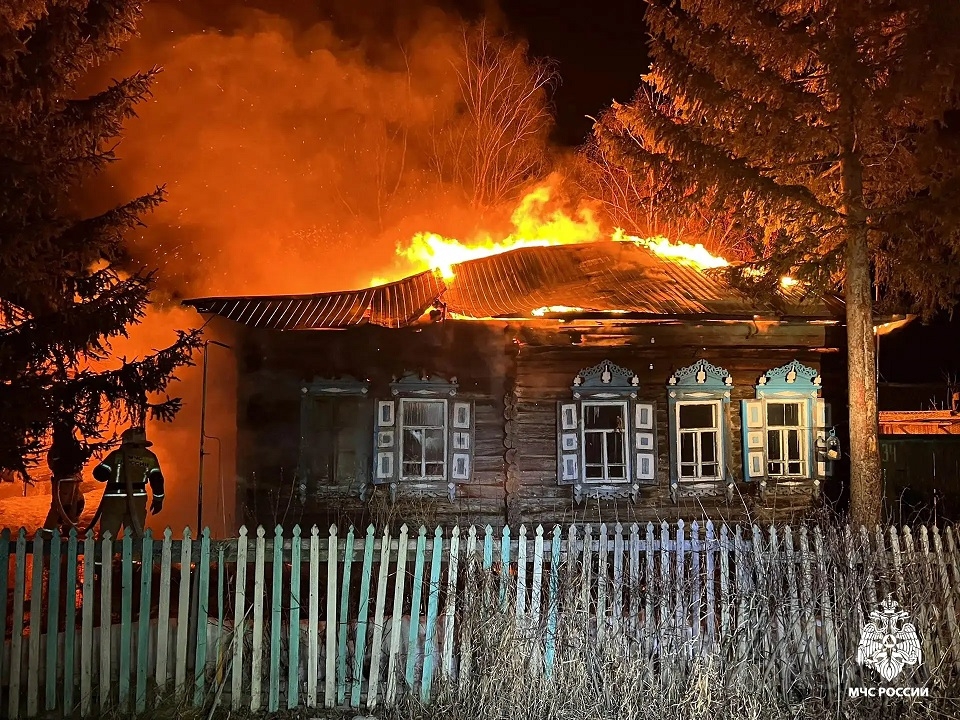 Как видно на кадрах с места пожара, огонь бушевал в доме, а также сильно пробивался через крышу.