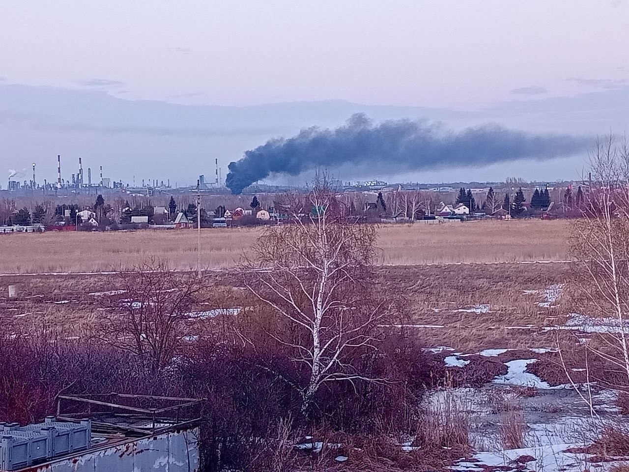 Судя по приложенному видео, из одной «точки» высоко поднимается густой черный дым. Официальных комментариев под сообщением пока нет.
