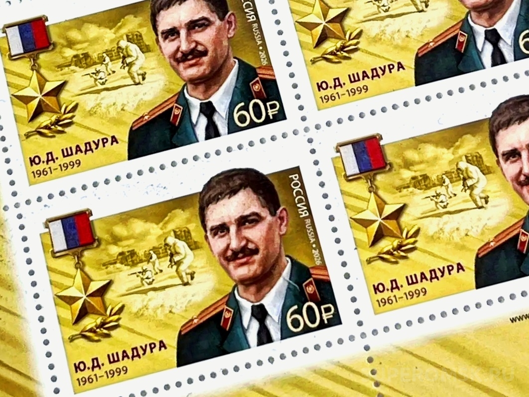 В честь выпускника Омского высшего общевойскового командного училища, Героя Российской Федерации Юрия Шадуры выпущена почтовая марка, сообщили в пятницу, 27 марта 2026 года, в пресс-службе «Почты России».