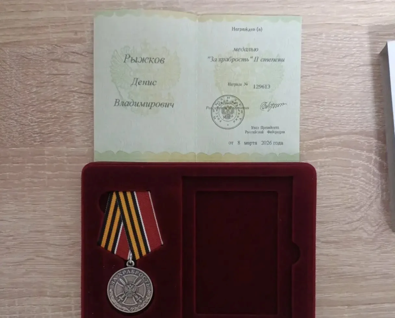 Как стало известно «СуперОмску», сотрудник хозяйственного управления администрации Омского района Денис Рыжков награжден медалью «За храбрость» II степени. Соответствующий указ в марте 2026 года подписал президент РФ Владимир Путин.