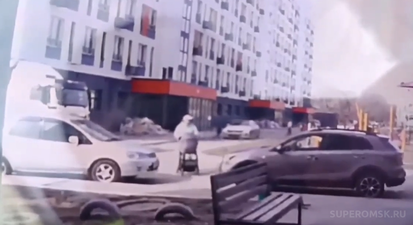 На фото: кадр наезда на ребенка / скриншот видео: УМВД по Омской области