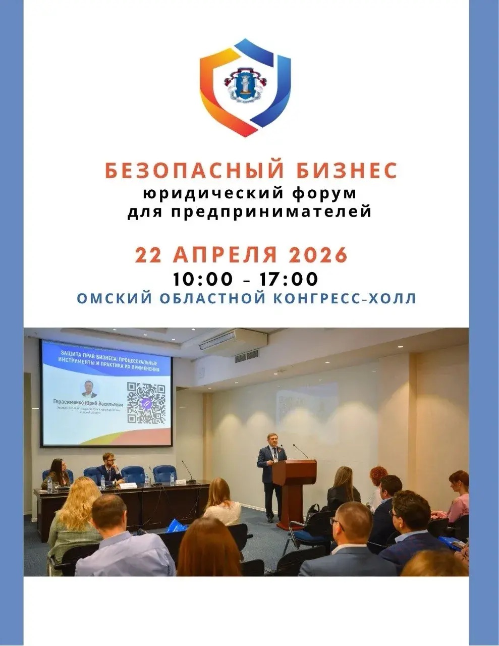 22 апреля в Омске состоится уже третий по счету юридический форум для бизнесменов – «Безопасный бизнес-2026». Мероприятие пройдет в Областном конгресс-холле (ул. 70 лет Октября, 25, к. 2).