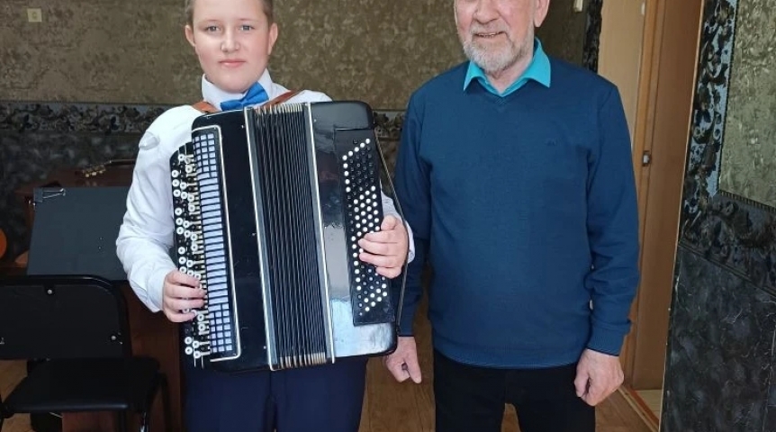 Сообщается, что талантливый юный музыкант из многодетной семьи Виктор Марченко получил в дар личный баян «Рубин-7». В семье трое детей, и сейчас родители ожидают пополнения – четвертого малыша. Виктор с сентября 2025 года с увлечением осваивает игру на этом инструменте на народном отделении школы.