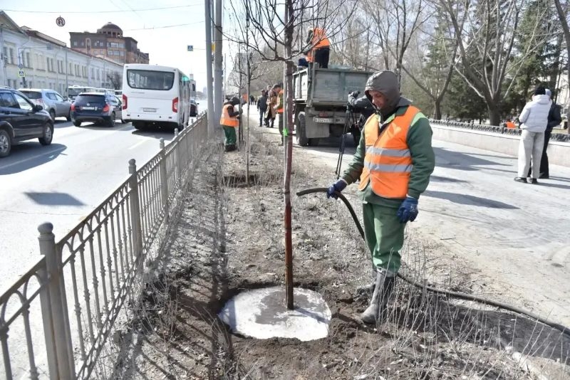 Мэр Омска Сергей Шелест во вторник, 14 апреля 2026 года, сообщил, что специалисты Управления дорожного хозяйства и благоустройства начали весеннее озеленение города.