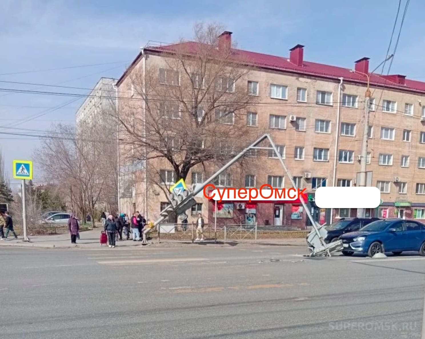 Порывы сильного ветра уже начали оказывать негативное воздействие на инфраструктуру города Омска. В субботу, 18 апреля 2026 года, по всей видимости, сильным порывом сломан светофорный столб на пересечении улиц 10 лет Октября и 20-й линии в Центральном административном округе Омска.