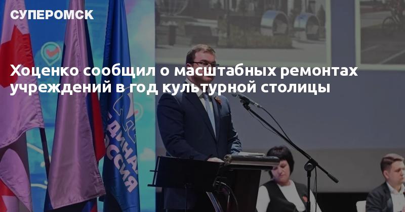 Виталий Хоценко сообщил, что в этом году будут капитально отремонтированы четыре объекта музея «Старина Сибирская» в Большеречье, два региональных театра в Омске и Дом культуры в Тюкалинске. Начат ремонт драматического театра, областной библиотеки имени Пушкина, музея им. Достоевского, а также ДК в Азовском и Муромцевском районах, музея в Одесском районе. Заканчивается ремонт детской школы искусств в Седельниково и кино-досугового центра в Кормиловке.