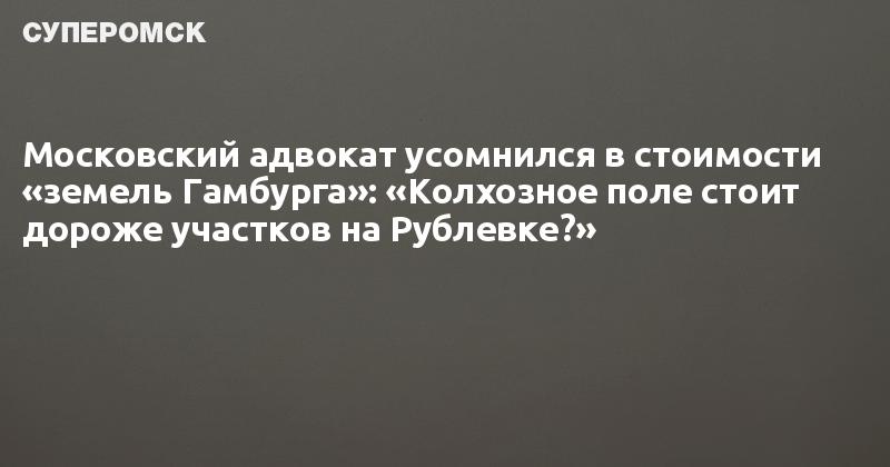 Московский адвокат усомнился в стоимости «земель Гамбурга»: «Колхозное поле стоит дороже участков на Рублевке?»