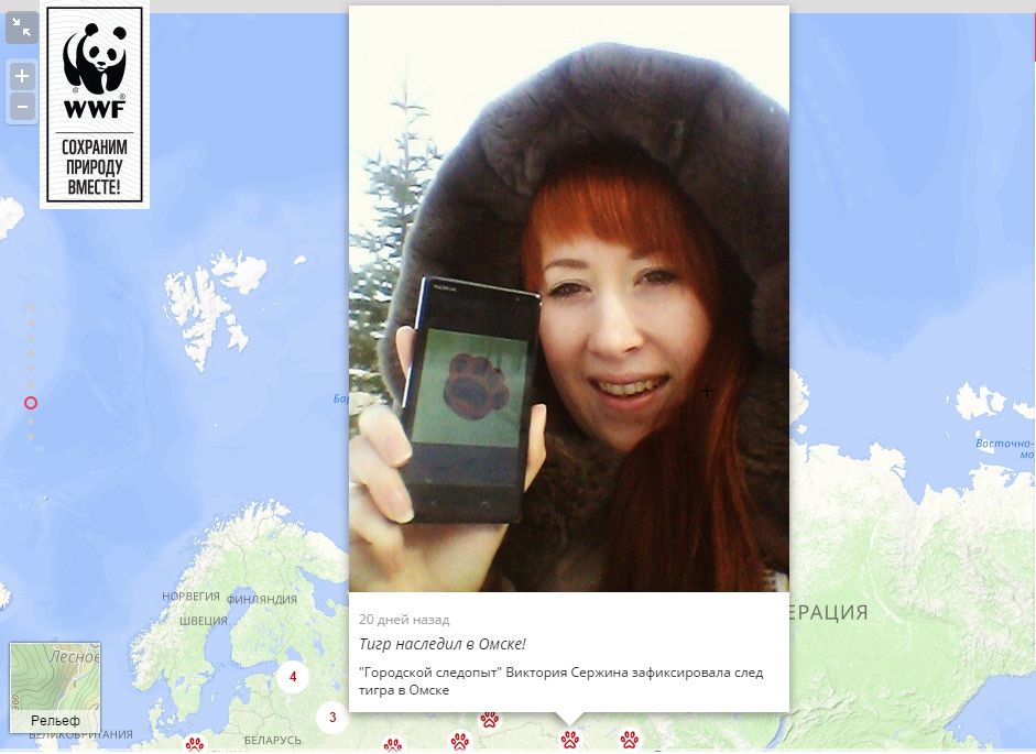 «А еще на сайте можно «наследить»: сфотографировавшись со следом тигра в любой точке земного шара, человек демонстрирует свою заинтересованность в том, чтобы люди узнали о проблемах крупнейшей кошки планеты и помогли ей выжить. Именно таким образом «следы» тигра появились в Москве, Санкт-Петербурге, Омске, других уголках России и за ее пределами!» - говорится на сайте WWF Россия.