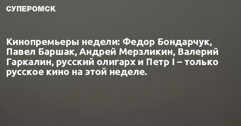 Кинопремьеры недели: Федор Бондарчук, Павел Баршак, Андрей Мерзликин, Валерий Гаркалин, русский олигарх и Петр I – только русское кино на этой неделе.