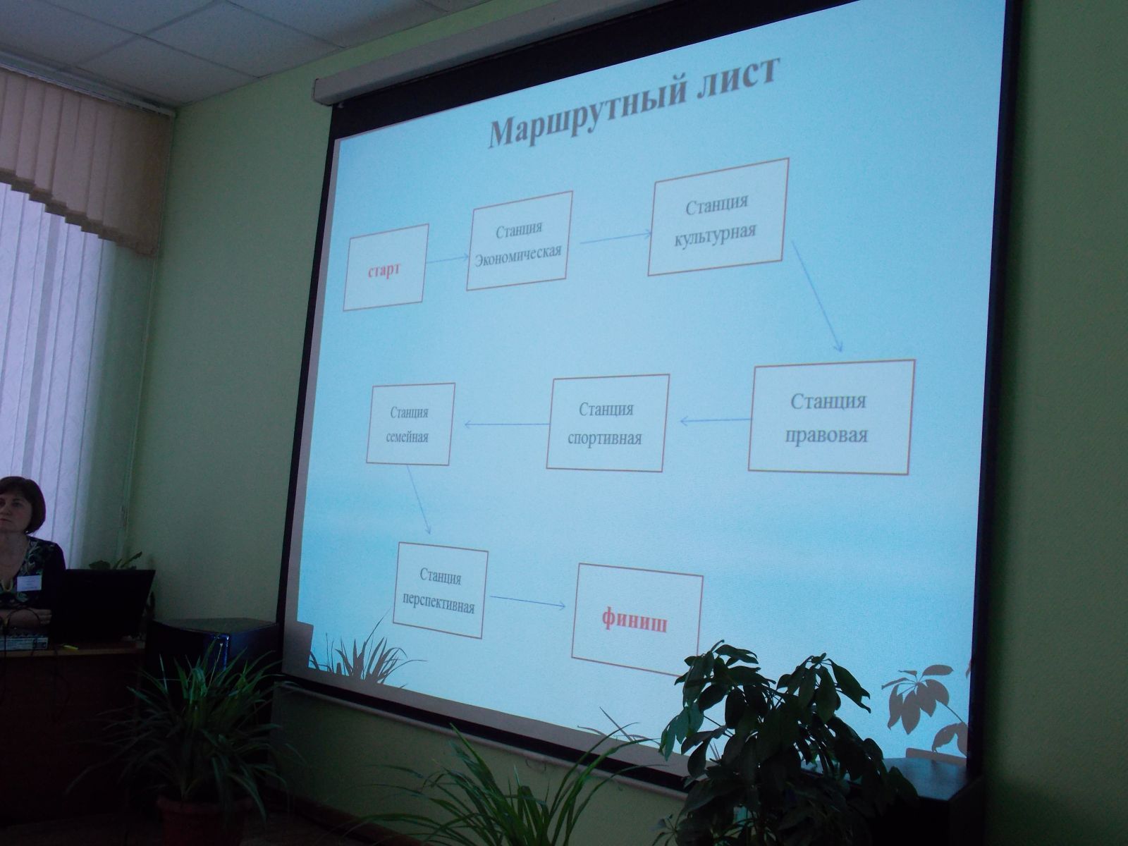 На станции «Правовая» необходимо было ответить на вопросы, касающиеся федеративного устройства, квалификации преступлений. Также командам было предложено вспомнить сказки, краткое содержание которых озвучивала юрисконсульт центра, узнать знаменитых героев и посмотреть на эту сказку глазами юриста.