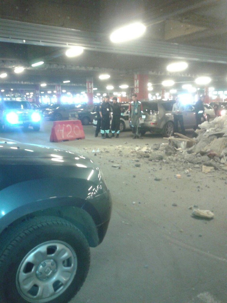 «Около 17:00 на подземной парковке упал потолок на Мерседес, рядом стоял Рено и форд. Пострадал только Мерседес».