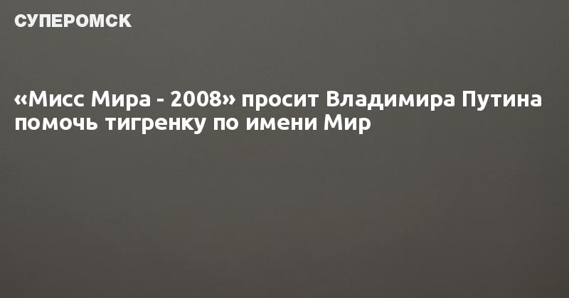 Обладательница титула «Мисс Мира - 2008» Ксения Сухинова на своей странице в социальной сети Facebook обратилась к президенту РФ Владимиру Путину. Девушка просит главу государства помочь тигренку по имени Мир, ставшему жертвой незаконной торговли дикими животными.