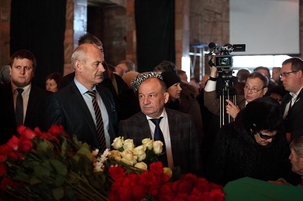 За несколько минут до появления губернатора возложили цветы министр культуры Омской области Виктор Лапухин и его зам Иван Шеин. Чуть раньше отдали последнюю дань уважения городские чиновники, в том числе директор департамента культуры Владимир Шалак и мэр Омска Вячеслав Двораковский.