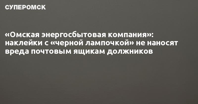 Как ранее сообщал «СуперОмск», прокуратура Омской области посчитала, что акция «Омской энергосбытовой компании», проведенная в декабре 2015 года, нарушает права граждан. На почтовые ящики должников энергетики наклеивали стикеры с изображением чёрной лампочки и надписью «Здесь живут неплательщики».