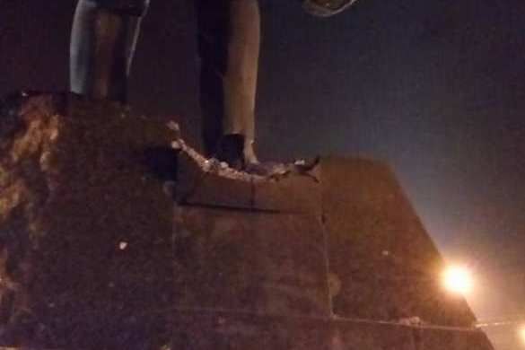 Пострадал постамент, на котором стоит бронзовое сооружение.