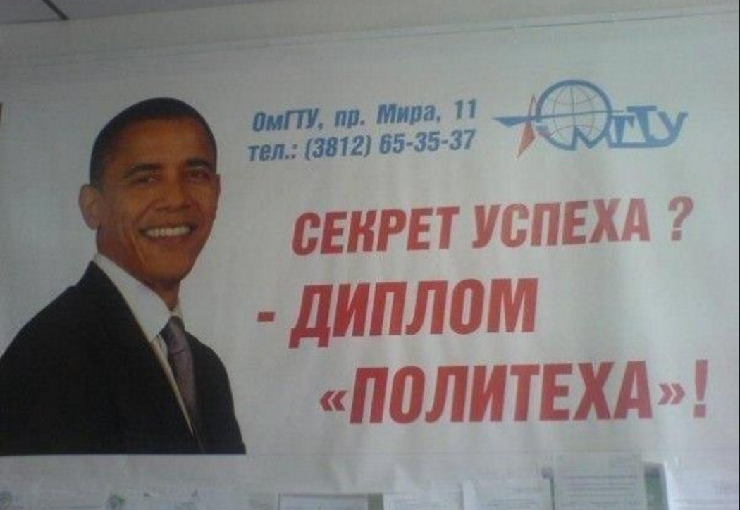 Отметим, что это не первый случай, когда президент США, сам того не зная, участвовал в омской рекламе. Ранее Барак Обама красовался на баннерах ОмГТУ.