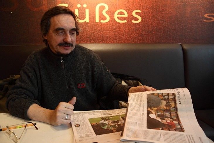 Дмитрий Врубель. Я ощутил, что я уже живу здесь, когда я понял, что мне «Моргенпост» или «Тагельшпигель» интереснее, чем газета «Русский Берлин». Я понял, что это вот и есть переход. На самом деле содержание немецкой прессы, а Германия – это же социальное государство, абсолютно копирует советскую. То есть здесь есть портрет начальника обязательно какого-нибудь, потом обязательно каких-нибудь простых людей, обязательно спорт и кто-нибудь из шоу-бизнеса. Мой основной вопрос к фотографии в советской газете был: «А что эти люди делают?». Не может быть, чтобы с такими серьезными лицами люди обсуждали решения последнего пленума ЦК КПСС. И дальше было развитие: скорее всего, они разговаривают о смерти ребенка или о старости. И здесь то же самое, мне жутко интересно угадать: а чем же они на самом деле занимаются?