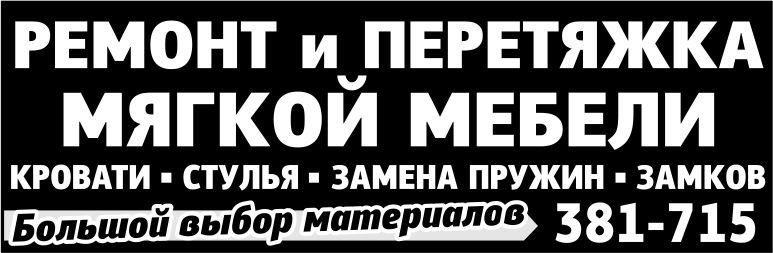 | ПЕРЕТЯЖКА мягкой мебели любой сложности. Тел.: 8-908-318-27-88, 59-81-59 |