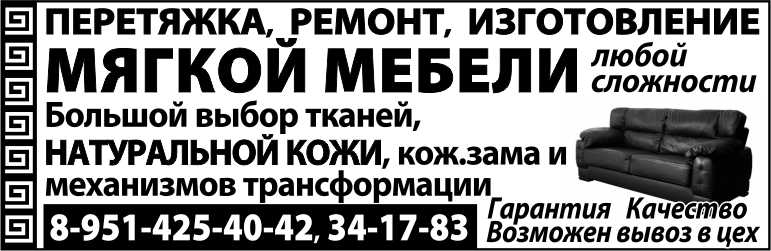 | АККУРАТНАЯ перетяжка, рем-т мебели. Мастер с мебельной фабрики. Ткани. Тел.: 349-791, 8-951-429-06-50 |