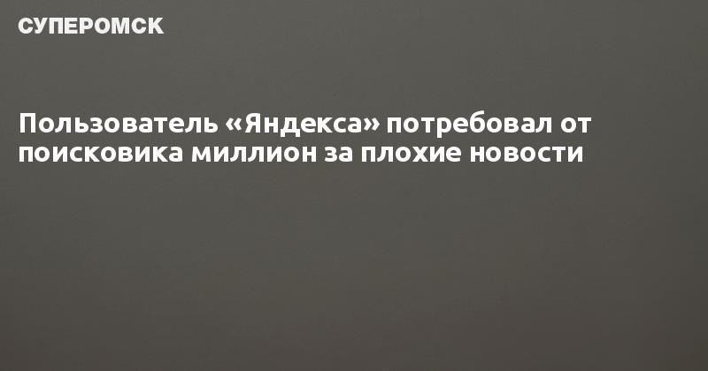 Пользователь «Яндекса» подал иск в Хамовнический суд Москвы с требвоанием взыскать с поисковика миллион рублей за плохие новости.