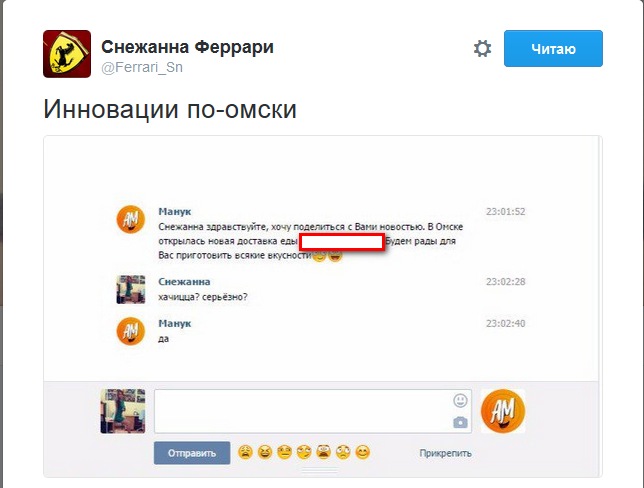Отметим, в паблике фирмы, помимо готовых блюд, рекламируется дружественное сообщество, в котором продается свинина неизвестного происхождения. Возможно, именно из нее и делают снедь для дальнейшей доставки клиентам.