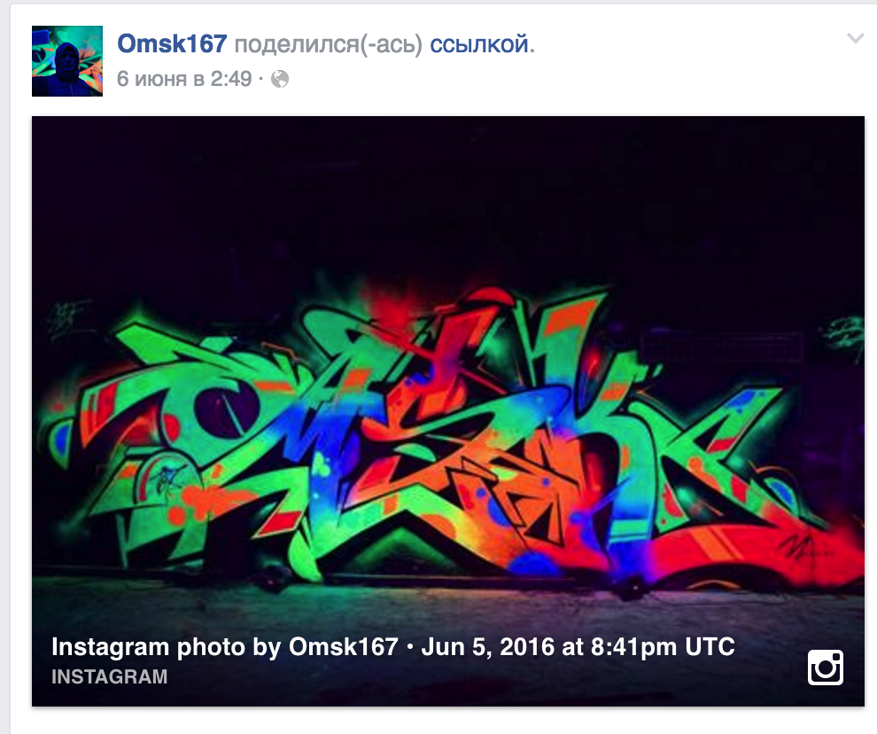Граффитчик под псевдонимом Omsk167 по-своему рекламирует Омск в Европе. Надписи с названием упомянутого города он оставляет в различных частях старого света. Причем под искусство попадают как заборы и стены домов, так и поезда. Каждую сделанную работу Omsk167 выкладывает на странице в соцсети Facebook. В частности, на кадрах можно увидеть надпись «Омск» на борту двухэтажного поезда . Одной из последних работ автора стала надпись «Омск», выполненная светящейся краской.