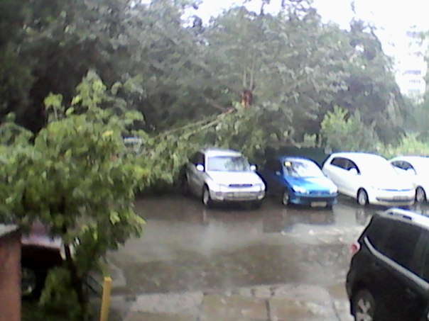 Так же, как во время микрошквала деревья завалили близстоящие автомобили на Перелета.