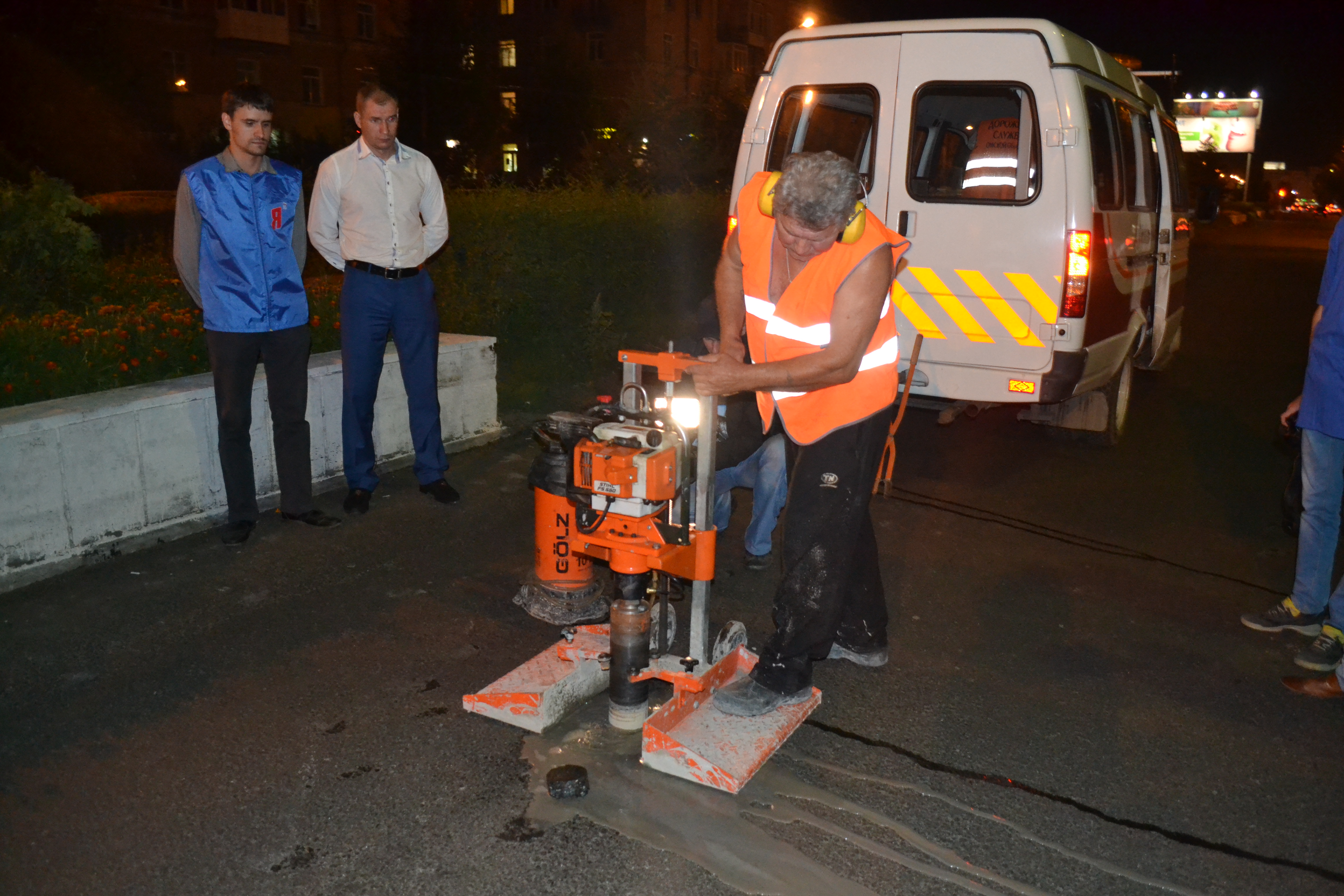 Кроме проверки качества дорожного полотна, участники «ночного дозора» могли наблюдать, как идет укладка асфальта. Столь позднее время выбрано, чтобы омичи не испытывали неудобств из-за пробок.