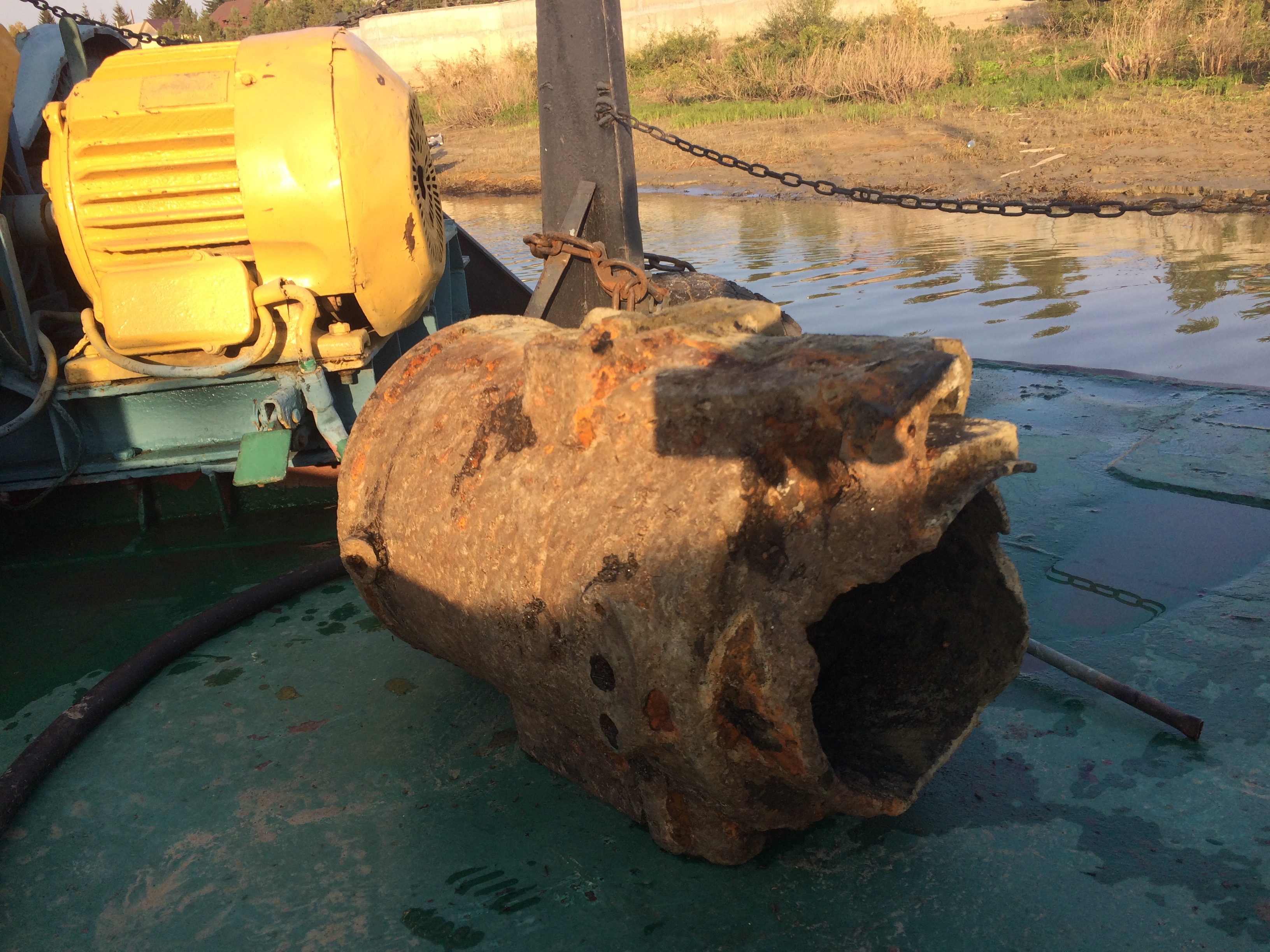 Первый из них даже отвлек участников процесса от поисков исторической реликвии. Конусообразный предмет изначально приняли за саму пушку, но впоследствии среди собравшихся пошли рассуждения о предназначении артефакта. Одни предположили, что это элемент парового двигателя, другие - что это часть оборудования для забивки свай. Но окончательного ответа к загадке, на котором бы сошлись все, так никто и не дал.