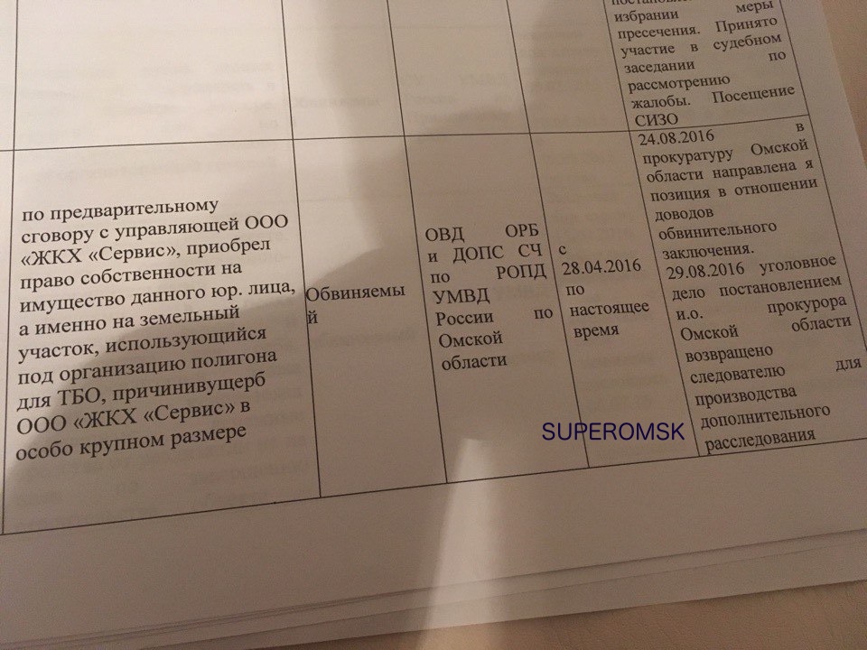 «24.08.2016 в прокуратуру Омской области направлена позиция в отношении доводов обвинительного заключения. 29.08.2016 уголовное дело постановлением и.о. прокурора Омской области возвращено следователю для производства дополнительного расследования», - говорится в сообщении.