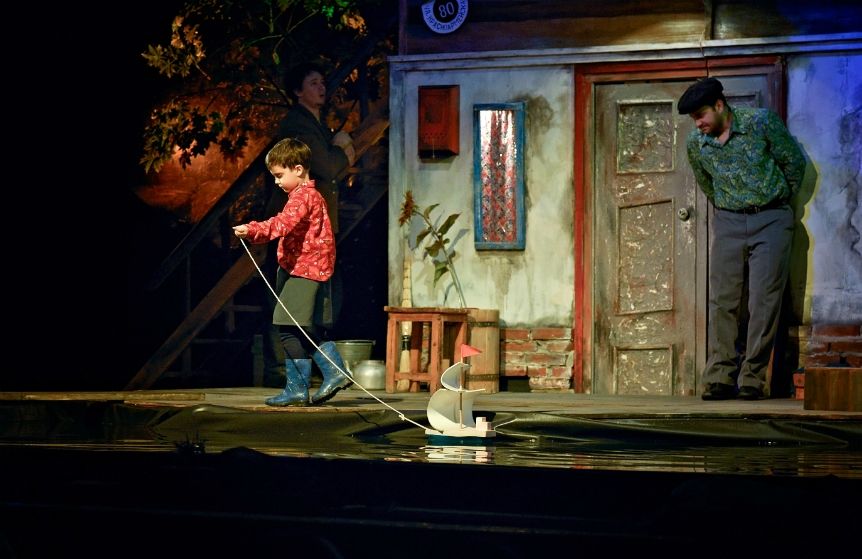26 и 27 ноября в театре состоялась премьера народной притчи «Нелюдимо наше море, или Корабль дураков» по одноименной пьесе Николая Коляды. Продолжительными аплодисментами зрители восторженно благодарили артистов за возможность реально оказаться в атмосфере восьмидесятых годов прошлого века. На улице ранняя осень, 15-е сентября, 1987 год. Слегка желтеющие листья березок и… огромная лужа перед домом. Режиссером Сергеем Федоровым очень точно схвачены срезы народной жизни, с радостями и печалями, скандалами и примирениями. Главная героиня Манефа (заслуженная артистка РФ Тамара Анохина) потрясающе органично живет в спектакле, притягивая и отталкивая всех обитателей дома № 80 по улице Краснофлотской. В ритме и стихии этой жизни есть яркие характерные персонажи, бесподобные комические образы, есть приглушенные полутона и легкие пунктирные линии, как мазки на большом полотне истории. Все, что происходит, смешно, грустно, трогательно и очень близко сердцу каждого. Появляется ощущение, что время остановилось… А как же наша жизнь современная, с компьютерами и презентациями, айфонами и всякими там селфи? Что изменилось? Да, технический прогресс… А по сути, во внутренней жизни - ничего. Куда продвинется человек всех времен, если будет надеяться на горисполком, государство наше и власть предержащих, ругать нерадивых соседей? Начните каждый с себя, как Манефа, как жители многострадальной улицы, дабы не оказаться во вселенской луже... Финальная песня спектакля душевно примиряет разные поколения и разные взгляды на жизнь. Ведь время всегда равнодушно, не равнодушны – мы. Ибо не вычеркнуть из жизни родных людей, какими бы они ни были, родные адреса, родные души.