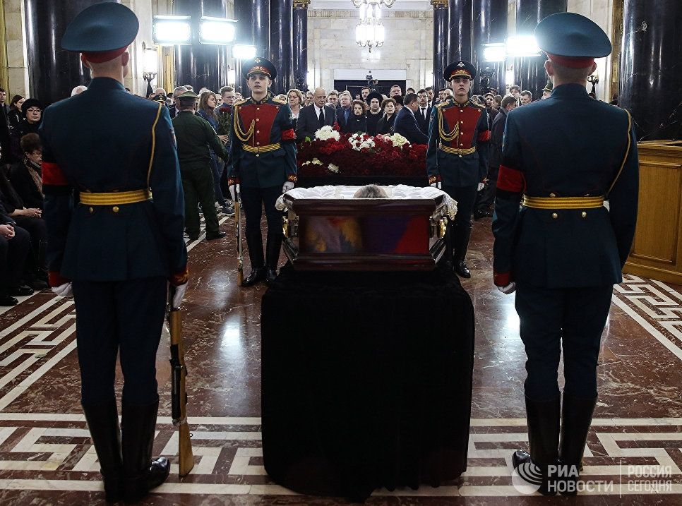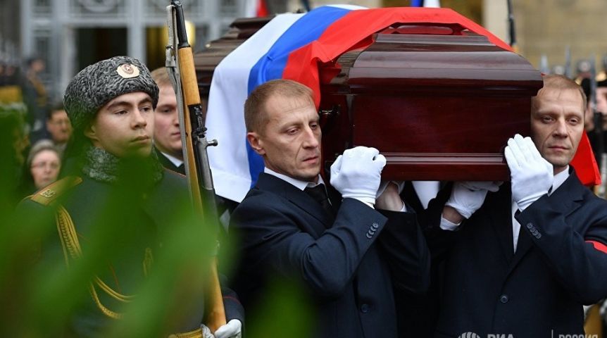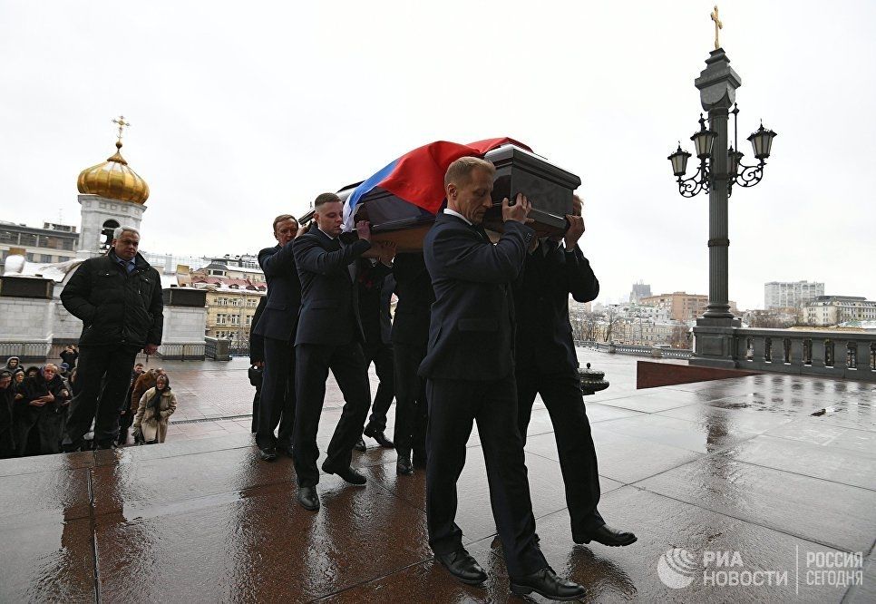 Андрея Карлова похоронят на Химкинском кладбище с воинскими почестями. Отпевание провел патриарх Кирилл в Храме Христа Спасителя.