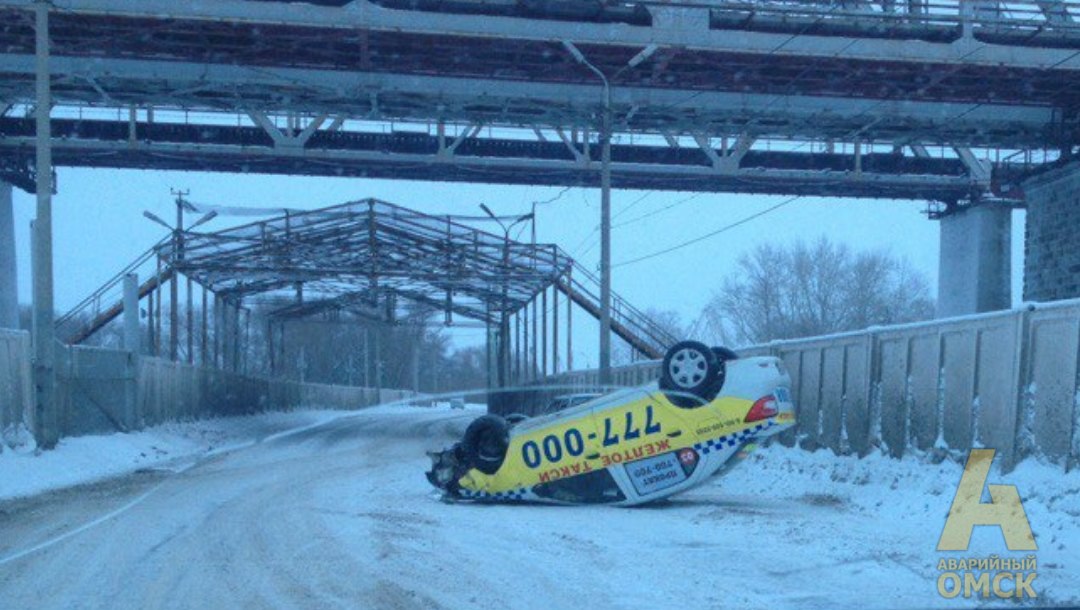 Однако не у всех ночь прошла гладко. Под утро пользователи омских пабликов начали выкладывать в сеть фото тех, чей новый год ознаменовался проблемами на дороге. Так, под железнодорожным мостом обнаружено перевернувшееся такси.