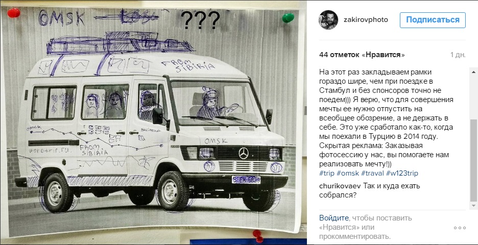 «А какие у вас планы на этот год?))))) Подготовиться к серьезному путешествию! Именно подготовиться. Сегодня мне приснился сон, в нем я купил такой микроавтобус! Проснулся уже с идеей: подготовить старенький микроавтобус к путешествию) На этот раз закладываем рамки гораздо шире, чем при поездке в Стамбул и без спонсоров точно не поедем))) Я верю, что для совершения мечты ее нужно отпустить на всеобщее обозрение, а не держать в себе. Это уже сработало как-то, когда мы поехали в Турцию в 2014 году», - пишет в своем аккаунте в Instagram фотограф.