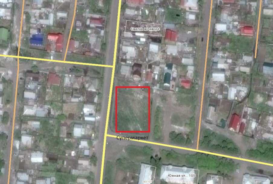 Предполагаемый супермаркет будет располагаться на пустыре возле дома № 105 по улице Южная, на пересечении улиц Южная и 5-я Кировская. Площадь участка для застройки составит почти 3800 квадратных метров.