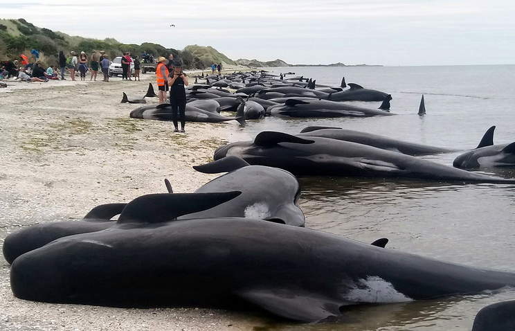 А в Новой Зеландии на берег выбросилось более 400 китов. Из них только сотню спасательные службы смогли вернуть в море, около 300 особей погибло. Это один из самых масштабных случаев гибели морских млекопитающих за всю историю наблюдений. Причины такого поведения китов пока не уточняются, однако специалисты опасаются, что они снова могут выброситься на берег.