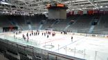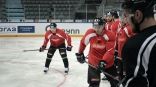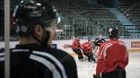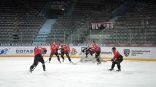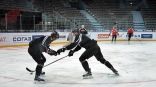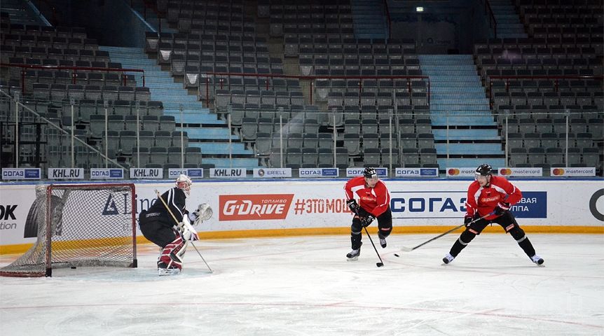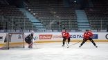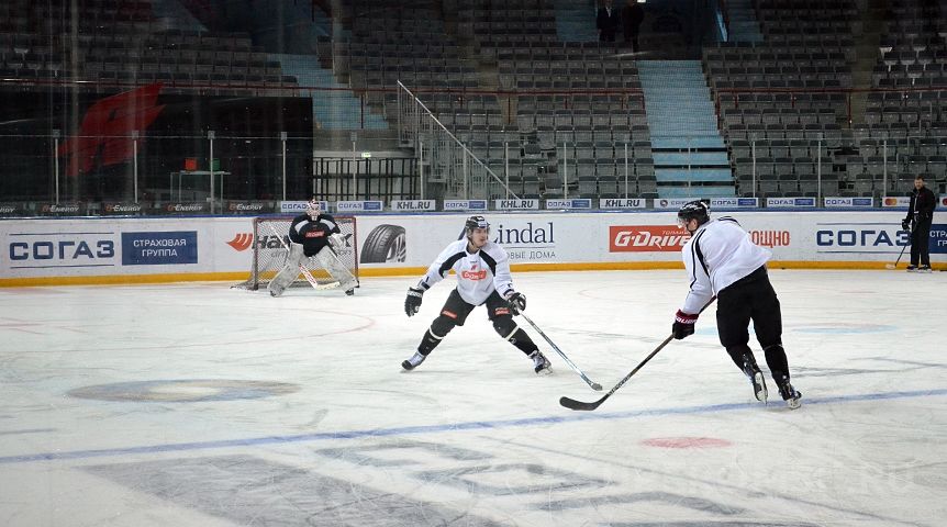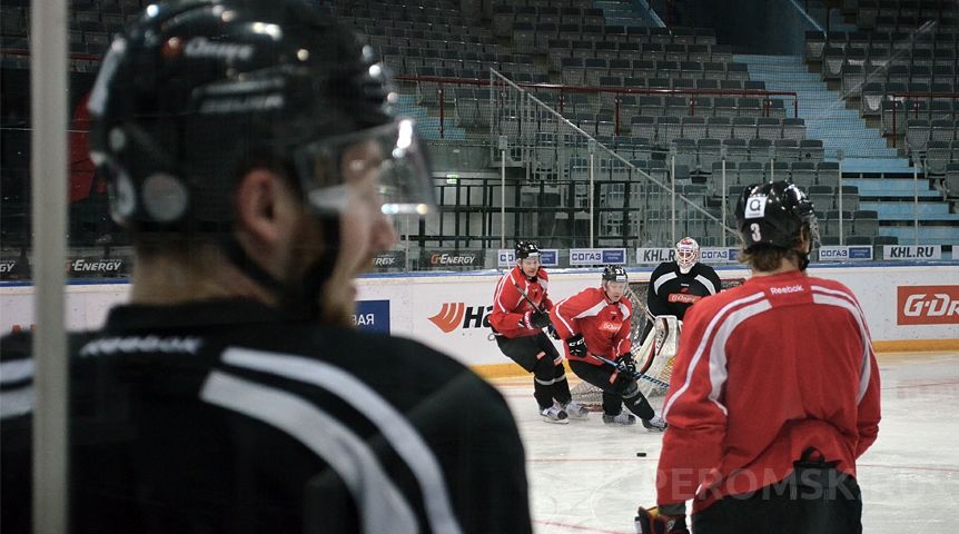 За два дня до старта плей-офф хоккеисты «Авангарда» провели очередную открытую тренировку для представителей СМИ. Снимать отрабатывающих приемы на льду хоккеистов операторам и фотографам разрешили только первые 20 минут, вероятно, чтобы раньше времени не раскрыть карты перед соперником.
