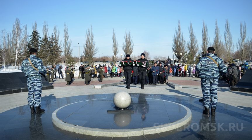 Праздничная программа началась с церемония возложения венка к мемориалу воинам-омичам, участникам военных конфликтов. Воздать должное соотечественникам, погибшим при исполнении и оставшимся верными своему долгу, пришло руководство Управления федеральной службы войск национальной гвардии по Омской области, представители регионального Правительства, правоохранительных органов и общественных организаций региона.