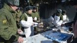 Также военнослужащие внутренних войск Росгвардии устроили гостям праздничный концерт и угостили всех желающих кашей из полевой кухни.