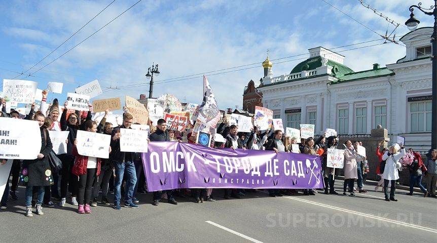 Акция проходила под девизом «Омск – городе де сад», среди лозунгов «монстрантов» были как бессмысленные, так и злободневные, например, о выборах мэра, запахе газа и желании покинуть Омск.