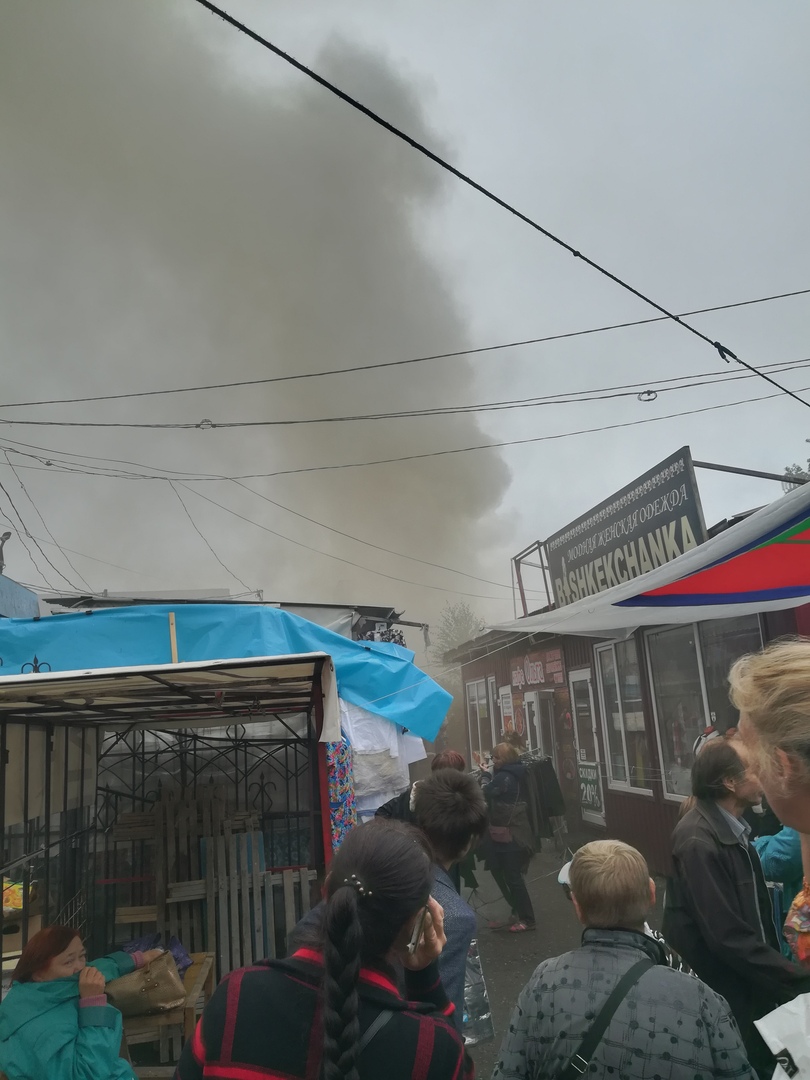 «Горит Ленинский рынок. Пожарная машина не могла проехать, поэтому встала на трамвайных путях (трамваи не ходят). Куда смотрят инспектора по пожарной безопасности?» - пишет омич Максим Балашов.