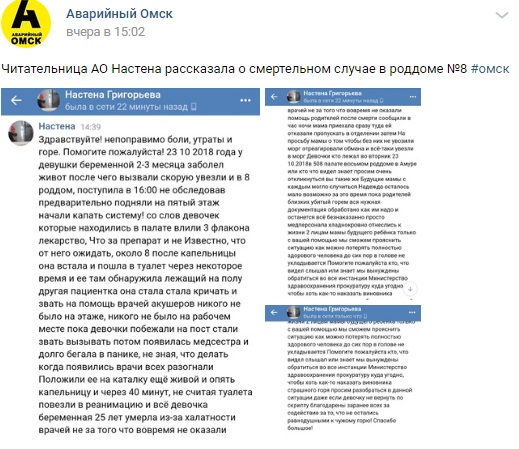 На сообщение в соцсетях отреагировал Следственный комитет по Омской области. Ведомство начало доследственную проверку по факту смерти беременной девушки.