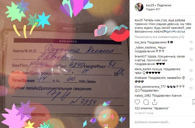 Спустя несколько минут после публикации этого поста фанаты и подписчики забросали молодую маму поздравительными комментариями.