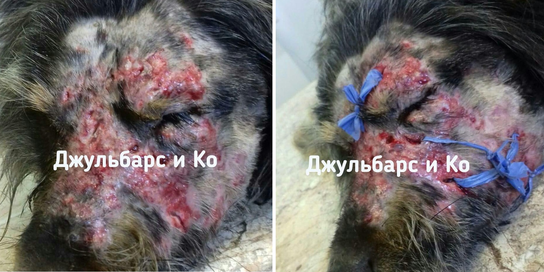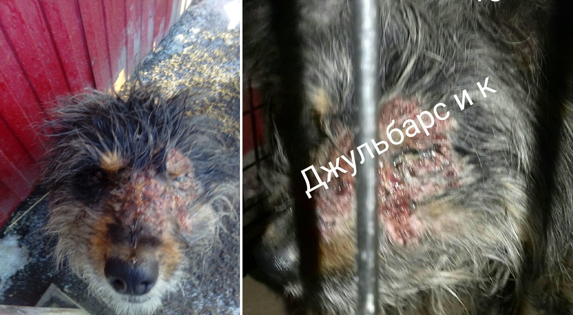 Накануне 8 марта омичи заметили возле магазина собаку с обезображенной мордой – она тянулась к прохожим и словно молила о помощи. Половина ее морды была покрыта большой раной, а глаз наполнился гноем. На следующий день собака оставалась на месте, однако ее страшные раны стали выглядеть еще хуже, а само животное всерьез намокло и продрогло после ночи на улице. Как она смогла пережить ночь, непонятно, однако ее силы были явно на исходе.