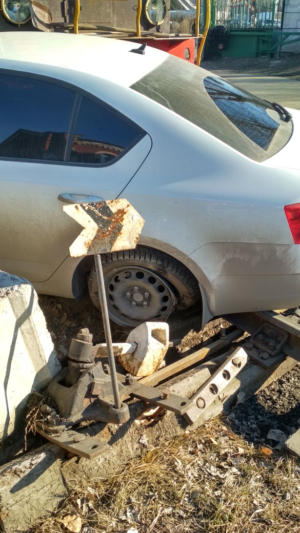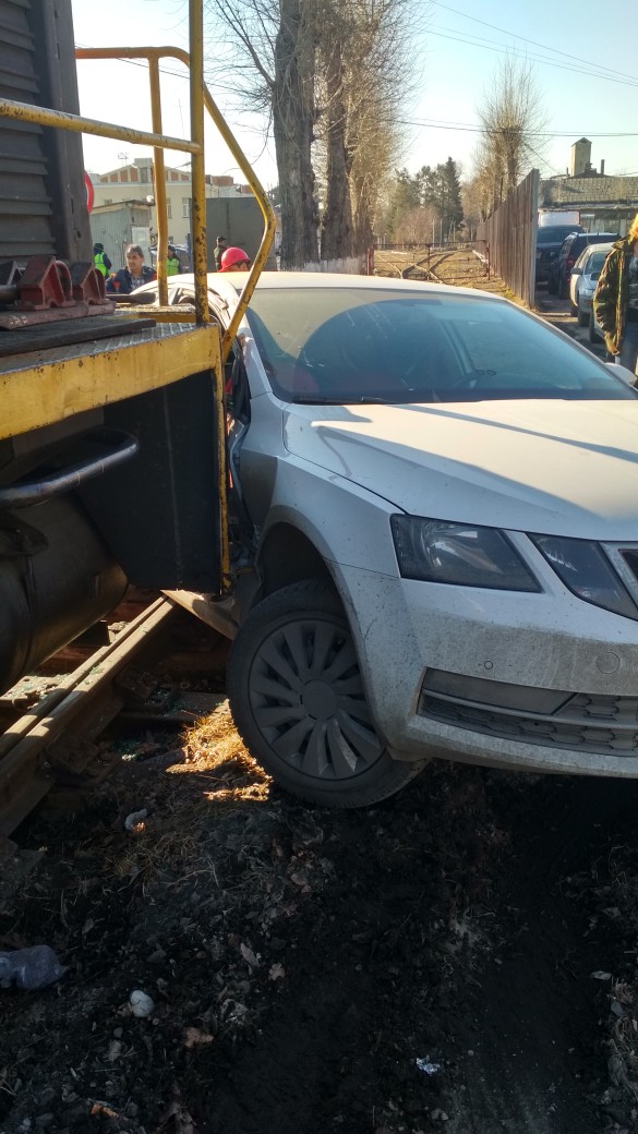 Как сообщили в соцсетях очевидцы происшествия, водитель автомобиля «Шкода Октавия» не пропустил тепловоз. В результате последний впечатал иномарку в бетонный блок. Судя по повреждениям, скорость тепловоза не была высокой.