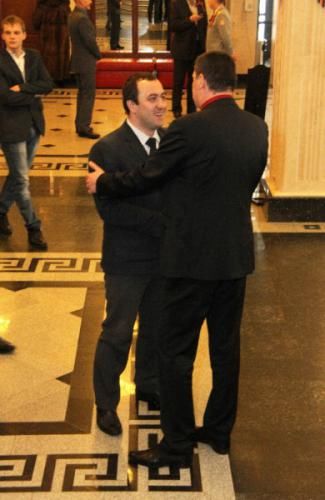 Фото: Игорь Денисов напутствует своего приемника Михаила Каракоза. БК55.ru
