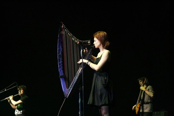 Наш город «Мельницу» ждал, что продемонстрировала высокая «зрительская плотность» – в день концерта билет на него было просто не достать и практически все места за редким исключением в зале филармонии были заняты. Правда, чтобы насладиться неподражаемым голосом Натальи и игрой ее музыкантов, публике пришлось немного потерпеть – выступление задержали почти на 15 минут. Но оно того стоило. Гости вечера, среди которых превалировали молодые люди, с восторгом и овациями встретили солистку группы. На сцене в ботинках на толстой подошве появилась рыжеволосая певица в коротком черном платье. Она пела и играла на своем любимом инструменте - арфе.