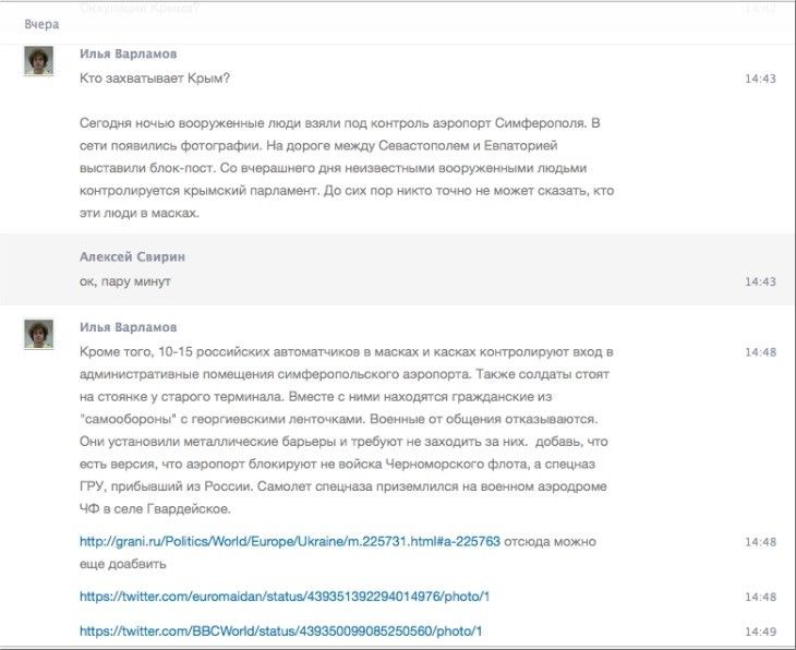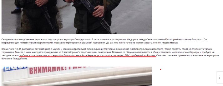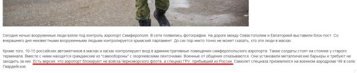 Одним из первых оплошность Варламова в блоге от 28 февраля под названием «Кто захватывает Крым?» заметил пользователь gosnikolay. В первоначальном варианте текста содержалась фраза «добавь, что есть версия, что аэропорт блокируют не войска Черноморского флота, а спецназ ГРУ, прибывший из России». Здесь речь идет об аэродроме Черноморского флота в селе Гвардейское.